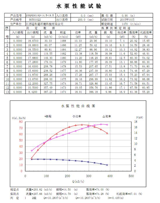 200QW293.82-14.5-18.5 性能試驗(yàn)